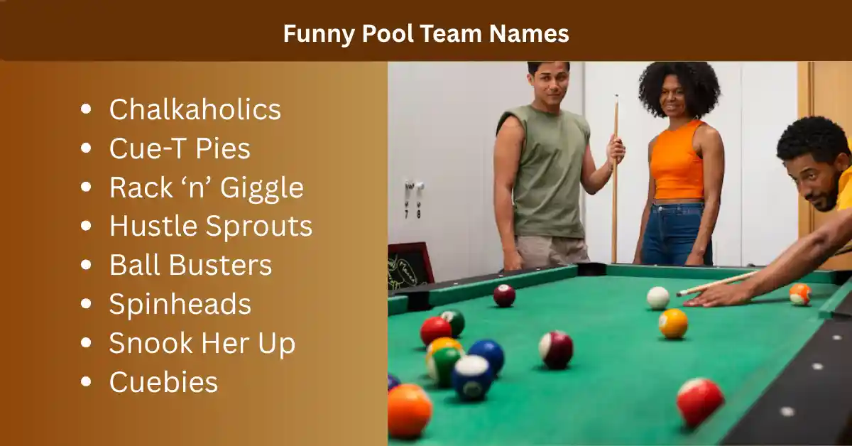 Bring laughter to the table with a funny pool team name! Light, cheeky, and witty names keep the vibe relaxed and make every match night a little more entertaining and memorable.